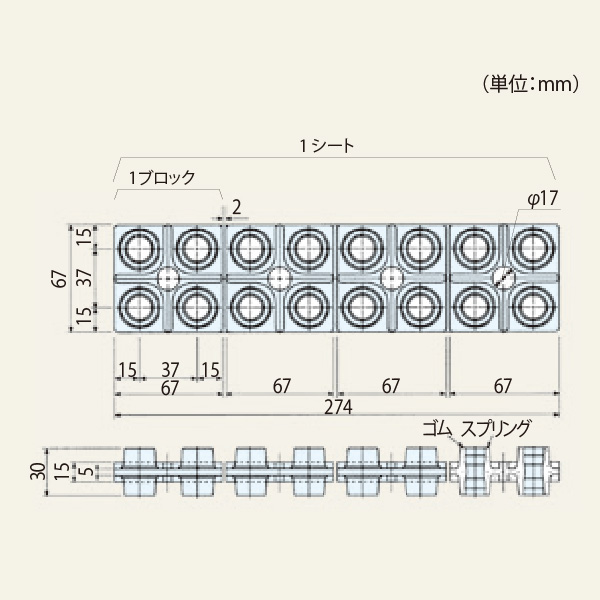 ゴムパッド内部にスプリングを内蔵した高性能な防振パッドです。1シート(4ブロック)の販売となります。