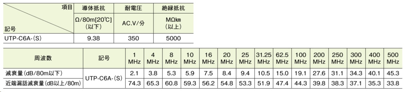 Cat6A(S) UTP ツイストペアケーブル(10GBASE-T対応)