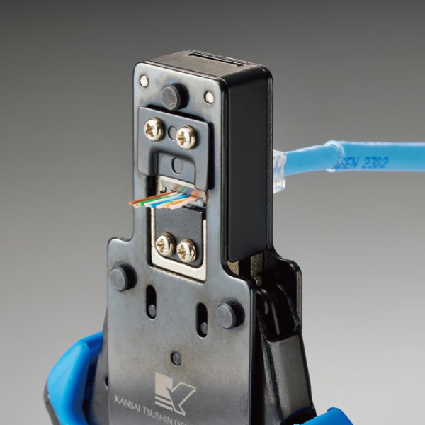 加工時に芯線がプラグを貫通することにより、ケーブルの撚り戻りを最小限にできます。 貫通式のため芯線の配列の確認が可能な為、加工時の配線ミスを低減できます。 モジュラープラグ圧着タイプ はこちら >>