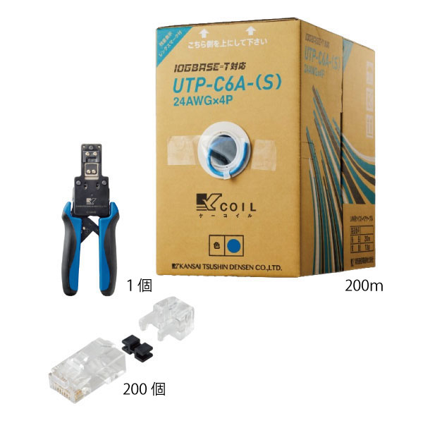 UTP-C6A-(S)・モジュラープラグに圧着工具を特別付属したセット商品です。
