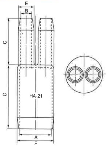 電力ケーブルの分岐管(二又管)サイズ:CV・CE 2芯用【適用電線】600V CV/CE 22~38SQ3KV CV/CE 14~22SQ ※共通画像を使用しています。