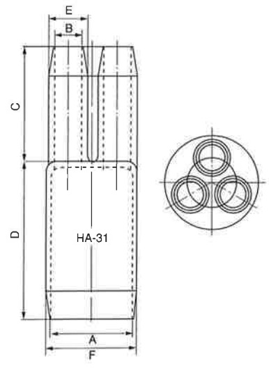 電力ケーブルの分岐管(三又管)サイズ:CV・CE 3芯用※共通画像を使用しています。