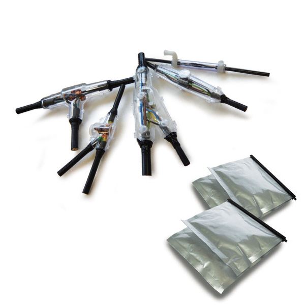 600V 電力ケーブル用レジン注入直線接続処理材。硬化時の発熱温度が低いポリウレタンレジンを採用(エコケーブル対応)
