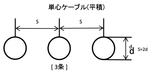2.ケーブル布設条数が異なる場合は、別紙技術資料「気中多条布設による許容電流低減率」に示す多条布設の場合の低減率より、許容電流値を補正する。